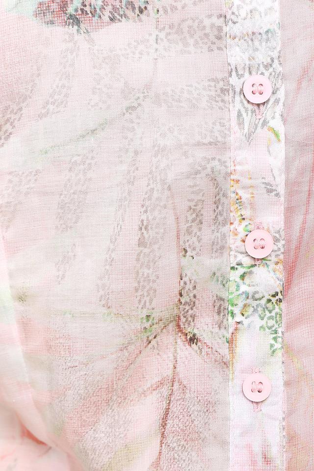 Женственная блуза Betty Barclay розового, оранжевого и зеленого цветов. Это изделие было выполнено из натурального хлопка. Данная модель предназначена для летнего сезона. Дополнена красивым цветочным рисунком. Застегивается с помощью маленьких розовых пуговиц. Такая блуза придаст любому летнему образу легкости и женственности.