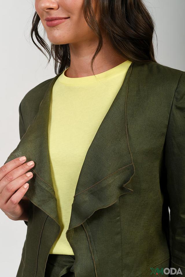 Оливковый цвет жакета универсален и легко сочетается с различными элементами гардероба. Он подходит как для создания деловых, так и для повседневных образов. Жакет станет прекрасным дополнением к юбкам, брюкам и платьям.