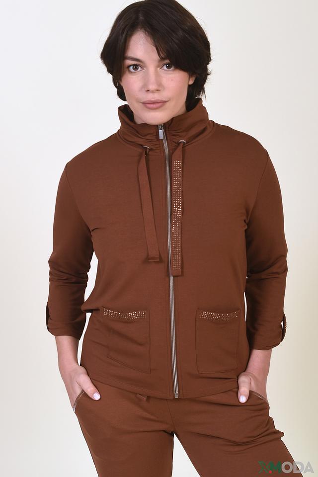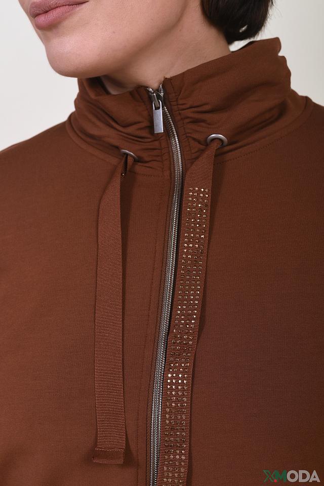 Жакет Betty Barclay коричневого цвета – стильная и удобная модель на молнии с декоративной отделкой. Жакет выполнен из мягкого модала с добавлением эластана, обеспечивающего комфортную посадку. Идеальный выбор для создания повседневных образов. Состав: модал 95%, эластан 5%