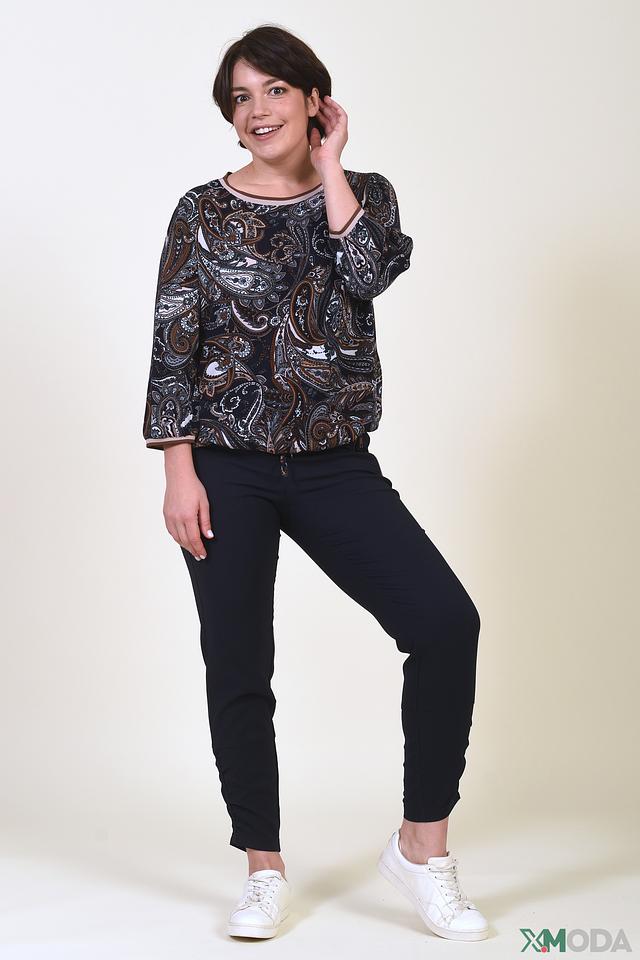 Блуза имеет удобный крой, который подчеркивает достоинства фигуры, и ¾ рукава, что делает ее подходящей для различных сезонов.