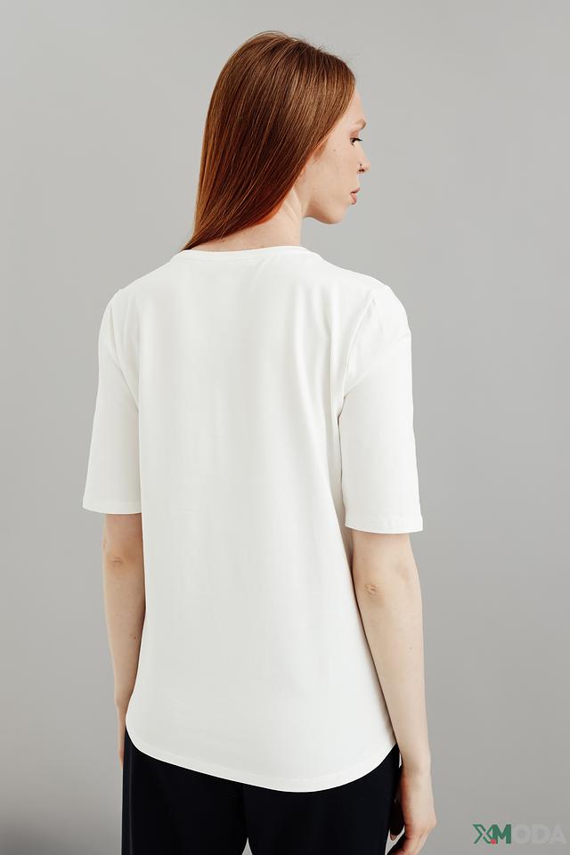 Круглый вырез горловины и короткие рукава делают футболку удобной для повседневной носки. Прямой крой обеспечивает свободу движений. Состав ткани: 95% хлопок, 5% эластан. Эта футболка идеально подойдет для создания модных и комфортных образов.