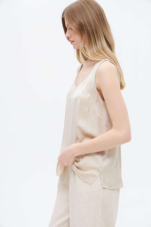 Топ имеет тонкие бретели и прямой силуэт. Благодаря своему минималистичному дизайну, этот топ легко сочетается с различными предметами гардероба — от джинсов и брюк до юбок и шорт. Он станет отличной базой для создания разнообразных образов.