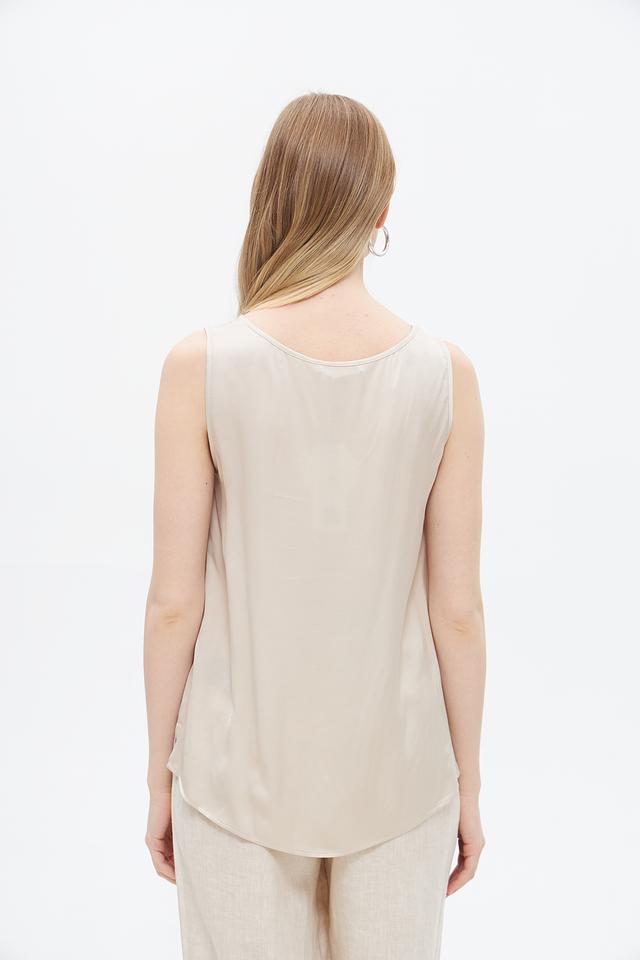 Состав топа — 100% вискоза, что обеспечивает изделию приятные тактильные ощущения и хорошую воздухопроницаемость. Это идеальный выбор для теплой погоды или для ношения в качестве нижнего слоя.