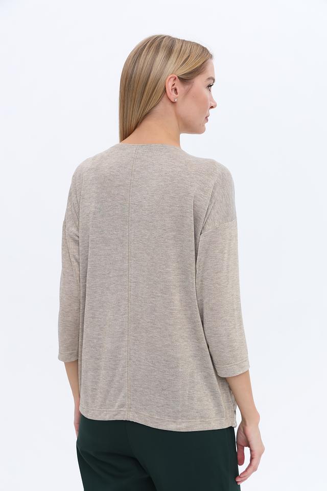 Округлый вырез горловины и рукава 3/4 делают эту блузу универсальной и подходящей для различных случаев. Она отлично сочетается с джинсами, брюками или юбками, создавая стильный и непринужденный образ. Состав: вискоза 59%, метализ.нить 38%, эластан 3%.