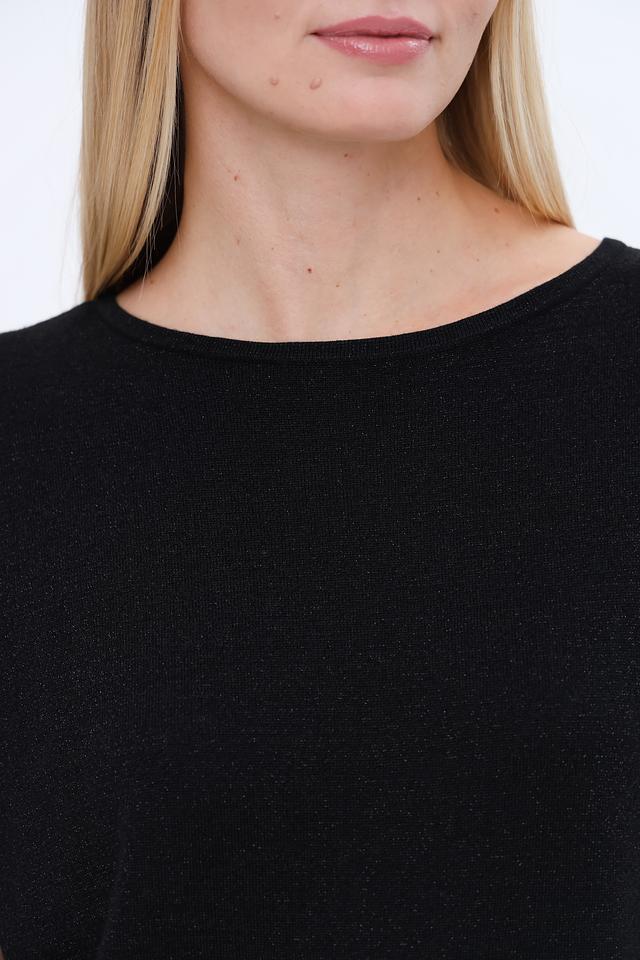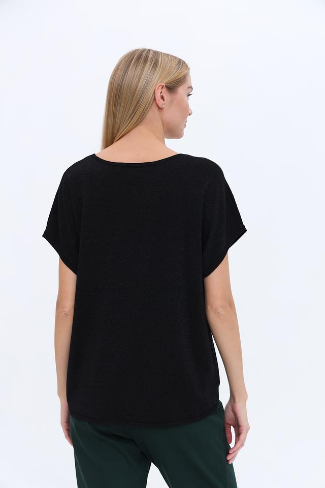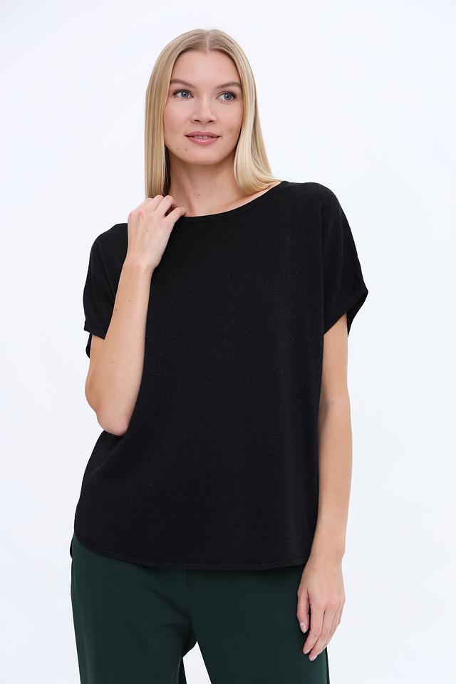 Чёрная блуза Bianca из вискозы с коротким рукавом – это стильное и комфортное решение для создания повседневных образов. Свободный крой и деликатный блеск нити придают модели особый шарм. Состав: вискоза 60%, полиамид 26%, метализ.нить 14%