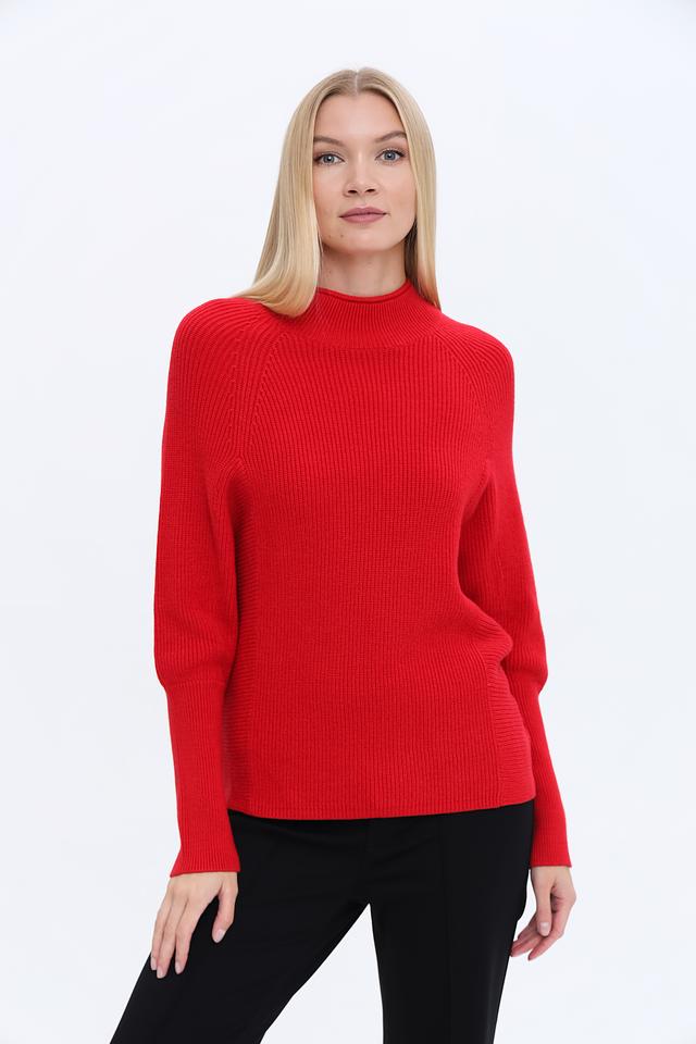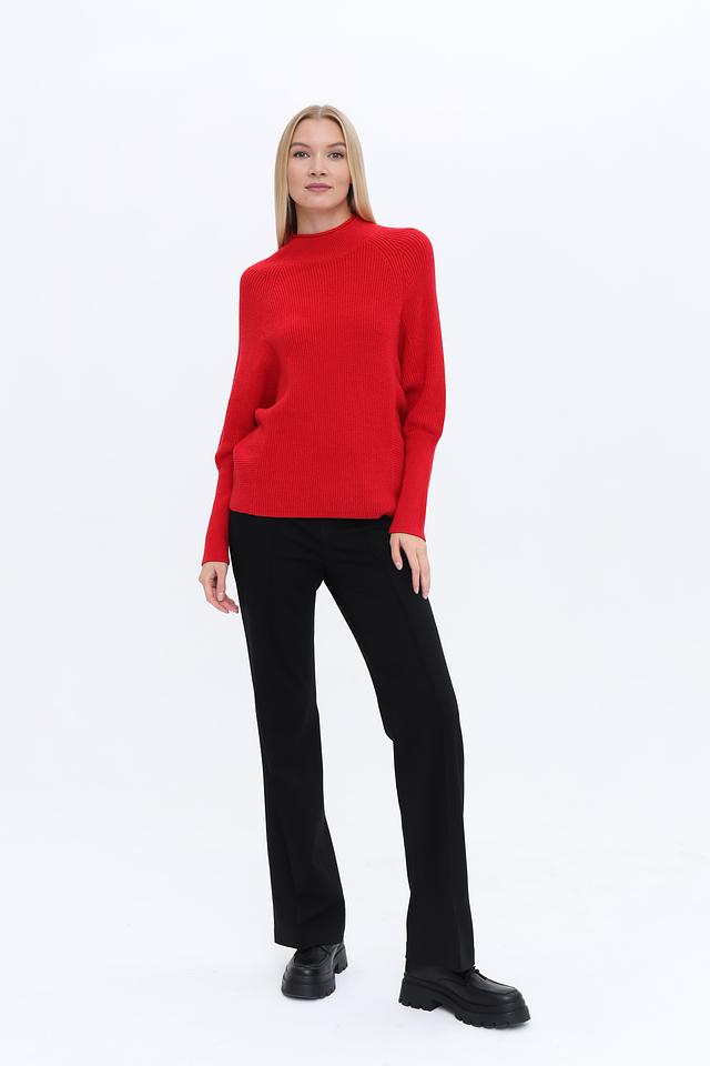 Пуловер имеет прямой крой и высокий горл, что делает его универсальным элементом гардероба. Яркий красный цвет добавит образу акцент и выразительность. Трикотажная структура изделия обеспечивает комфорт при носке и позволяет коже дышать.
