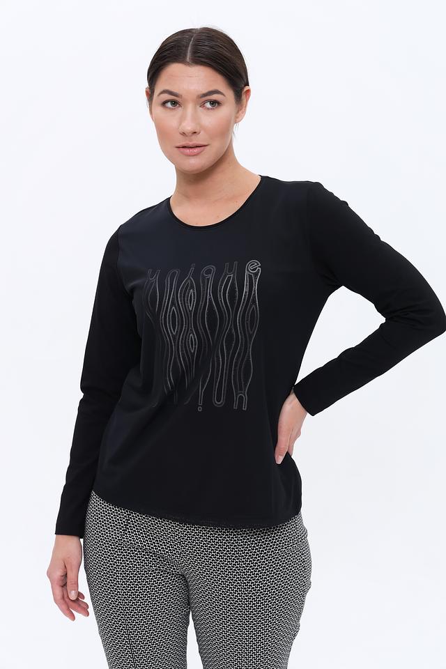 Чёрный лонгслив от Bianca с оригинальным графичным принтом. Изготовлен из мягкого хлопка с добавлением эластана для комфортной посадки и свободы движений. Идеально подходит для создания повседневных образов. Состав: хлопок 92%, эластан 8%
