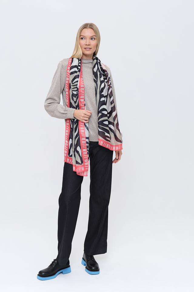 Шарф Bianca – стильный аксессуар чёрно-белого цвета с ярким принтом в виде зебры и красной надписью. Изготовлен из мягкого полиэстера, идеально дополнит ваш образ. Состав: полиэстер 100%