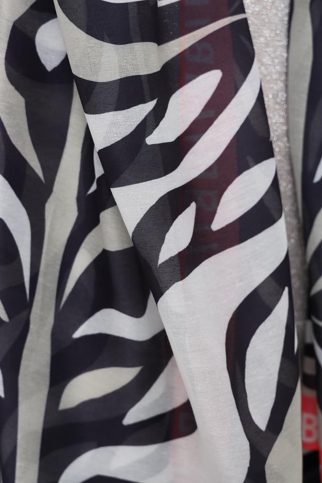Этот шарф от Bianca станет ярким акцентом в вашем гардеробе. Он выполнен в классической прямоугольной форме и украшен эффектным принтом, имитирующим шкуру зебры, выполненным в чёрно-белой гамме.