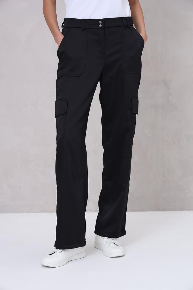 Представляем брюки карго от бренда Bianca. Эта модель выполнена в классическом чёрном цвете, который легко сочетается с различными элементами гардероба.