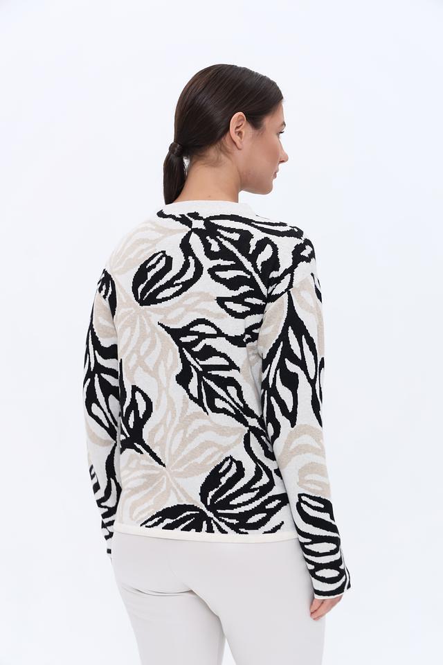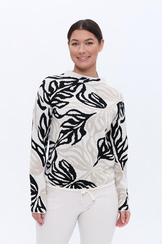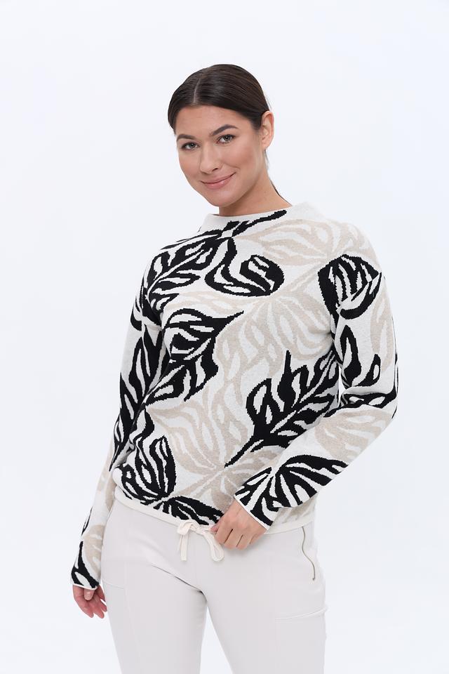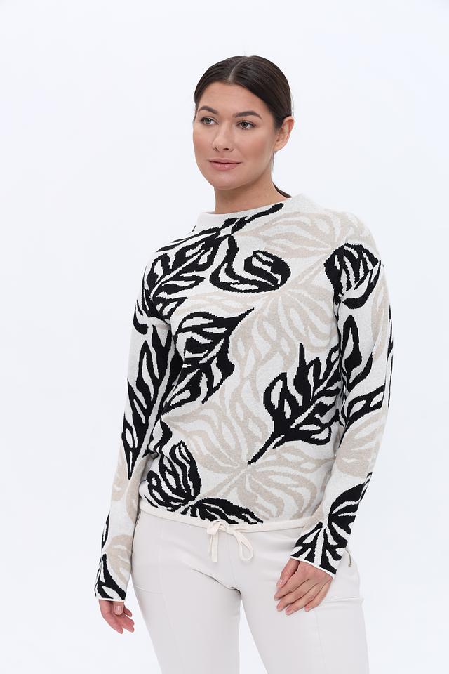 Этот стильный пуловер от Bianca выполнен в бежевых тонах и украшен выразительным принтом, изображающим листья. Модель имеет свободный крой, который обеспечивает комфорт и свободу движений.