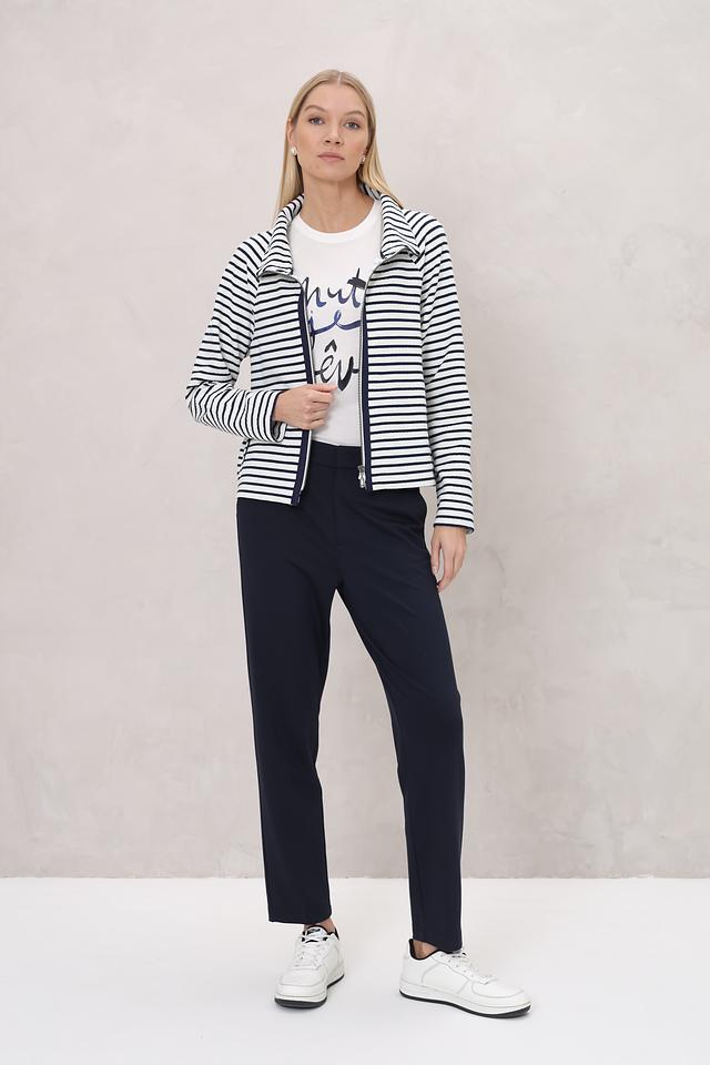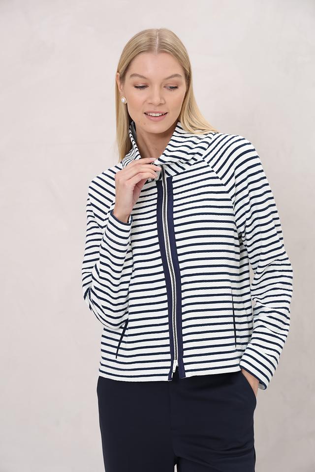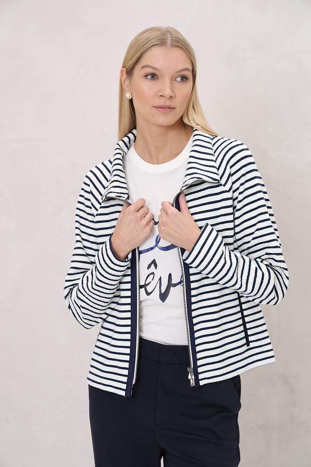 Жакет Bianca – это стильная модель в бело-синюю полоску с застежкой на молнию. Удобный крой и актуальный дизайн делают этот жакет отличным выбором для создания повседневных образов. Состав: хлопок 60%, полиэстер 35%, эластан 5%