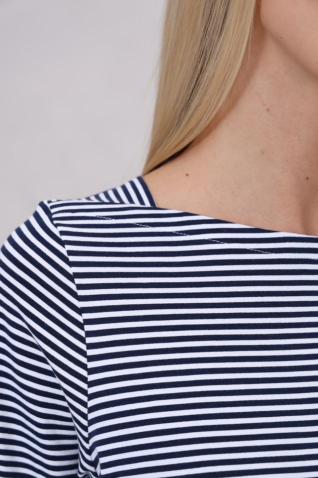 Женская футболка Bianca выполнена в классическую бело-синюю полоску. Модель с коротким рукавом и округлым вырезом горловины станет отличным дополнением к вашему образу. Изготовлена из мягкого хлопка с добавлением эластана. Состав: хлопок 92%, эластан 8%