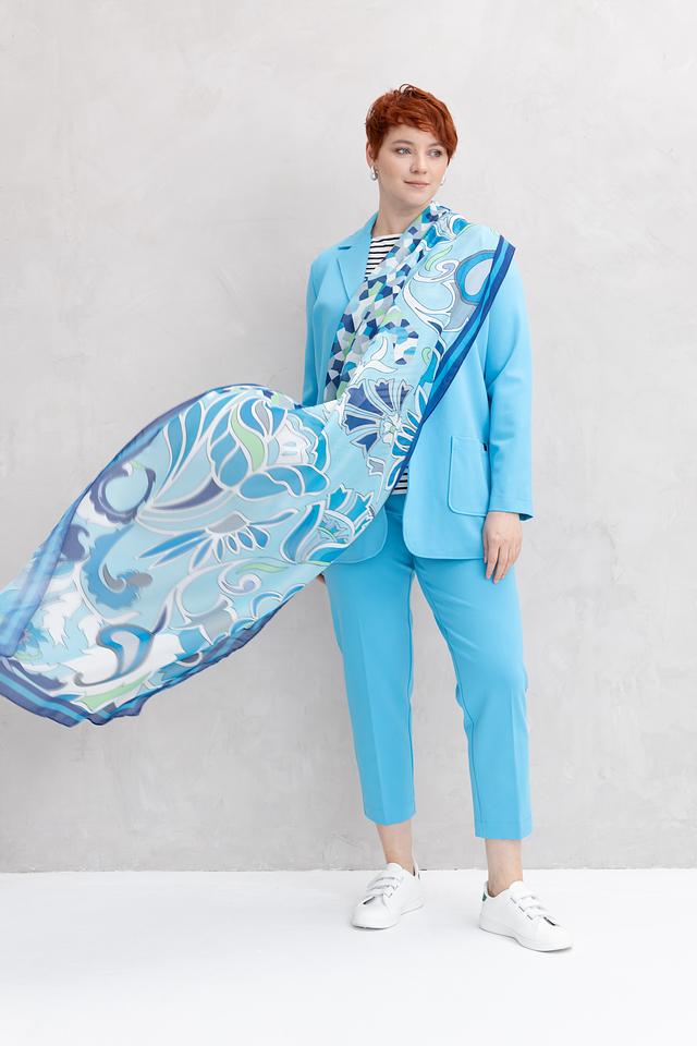 Этот шарф от Bianca – идеальный аксессуар для создания яркого и запоминающегося образа. Шарф выполнен в голубой цветовой гамме и украшен абстрактным рисунком, сочетающим в себе различные оттенки синего, зеленого и белого.