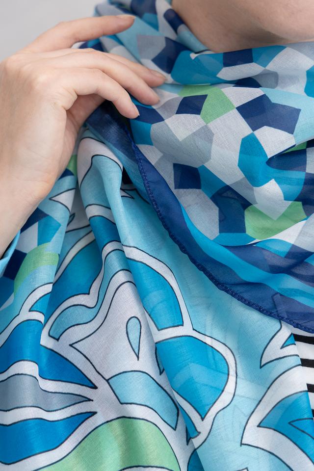 Шарф Bianca голубого цвета с ярким абстрактным рисунком станет стильным дополнением к вашему образу. Изготовлен из 100% полиэстера, что обеспечивает легкость и приятные тактильные ощущения. Состав: полиэстер 100%