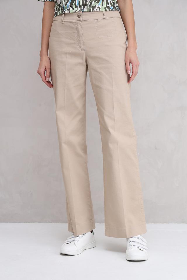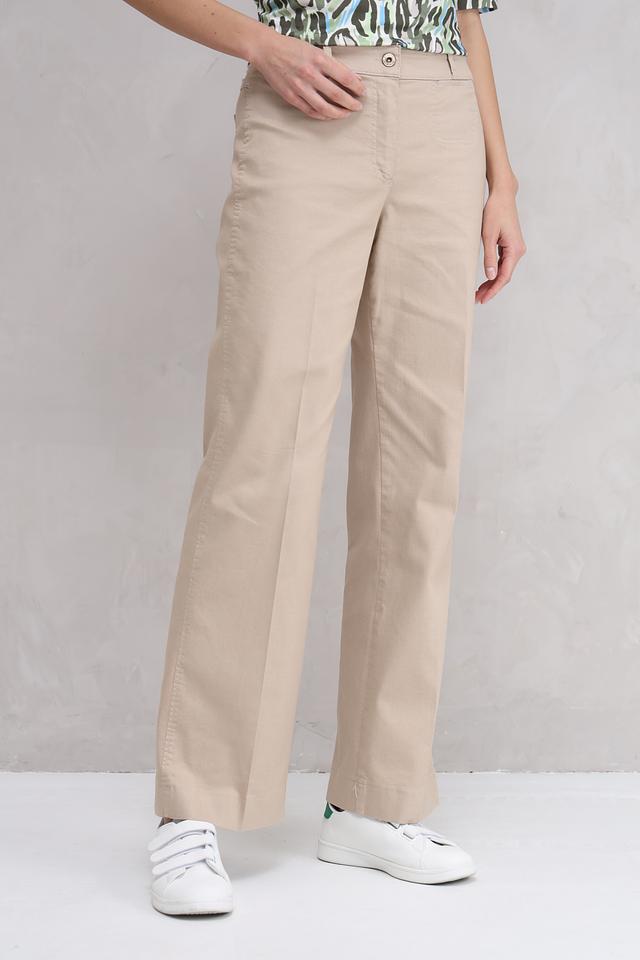 Представляем вашему вниманию джинсы от бренда Bianca. Эта модель выполнена в бежевом цвете и имеет прямой, слегка расклешенный к низу крой – палаццо. Джинсы изготовлены из высококачественного хлопка с добавлением полиэстера и эластана, что обеспечивает комфорт при носке и сохранение формы.