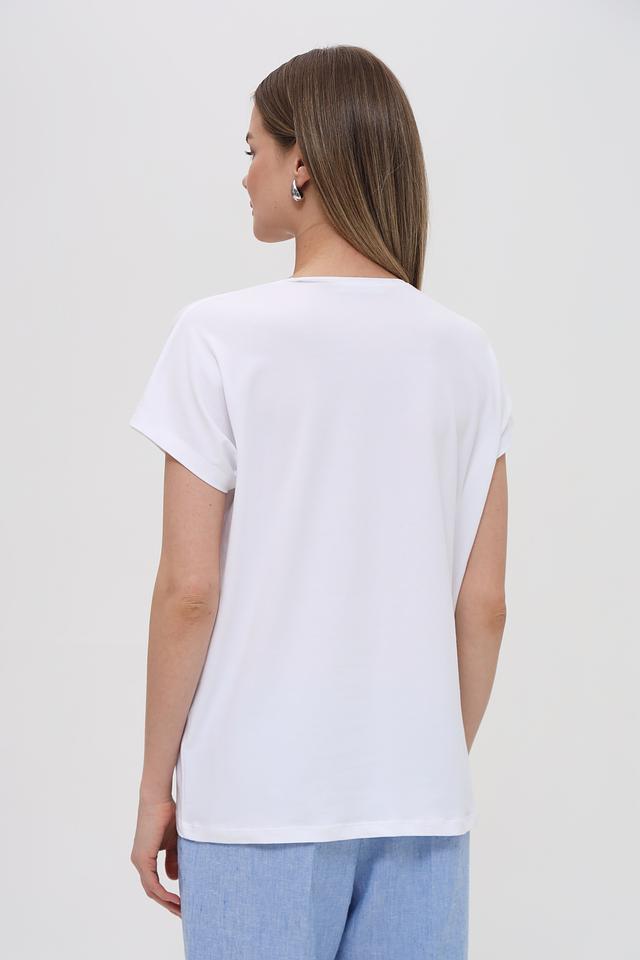 Эта стильная футболка от бренда Bianca выполнена из высококачественного хлопка с добавлением эластана, что обеспечивает комфорт в носке и отличную посадку по фигуре. Преобладающий цвет – белый, что делает ее универсальной основой для создания различных образов.