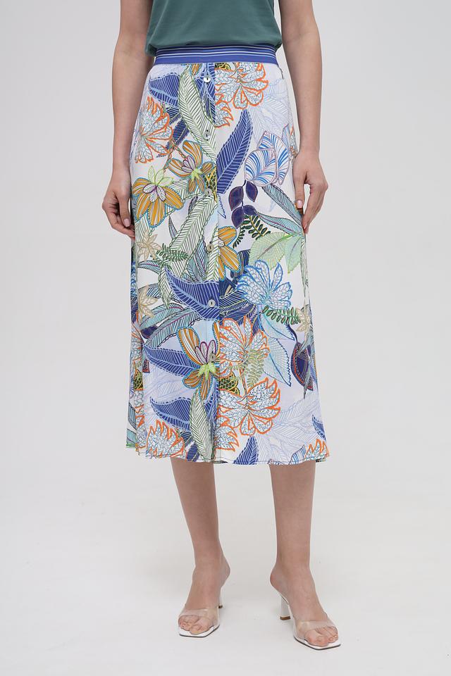 Юбка Bianca с ярким тропическим принтом станет отличным дополнением к летнему гардеробу. Модель выполнена из мягкой вискозы, обеспечивающей комфорт в жаркую погоду. Идеально сочетается с топами и блузками. Состав: вискоза 100%