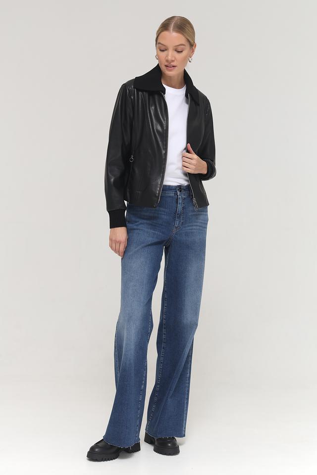Куртка имеет удобную застёжку на молнию, воротник-стойку из мягкого трикотажа и боковые карманы. Благодаря своему крою, она отлично сидит по фигуре и подходит для создания различных образов – от повседневных до более элегантных.