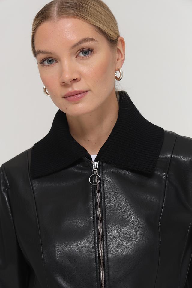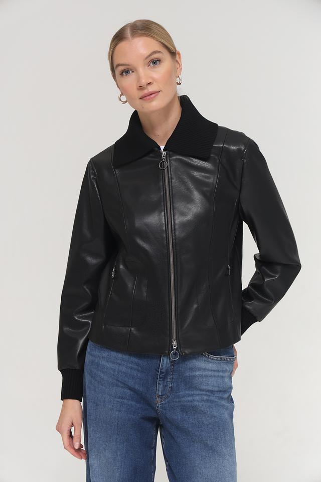 Чёрная куртка-косуха Bianca из экокожи – стильный и практичный выбор для создания модных образов. Модель выполнена с застёжкой на молнию и имеет воротник-стойку из трикотажа, что добавляет комфорта и оригинальности. Состав: полиэстер 50%, полиуретан 50%