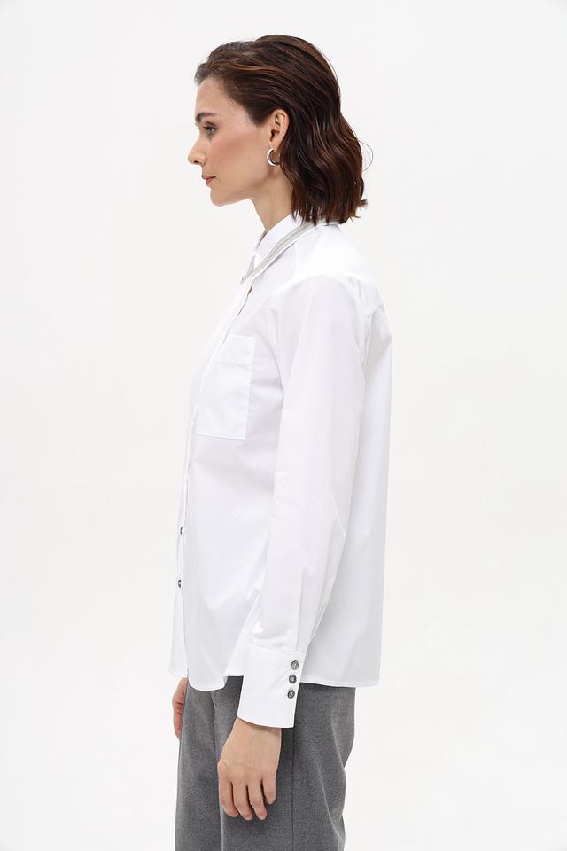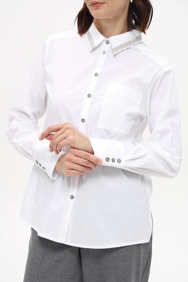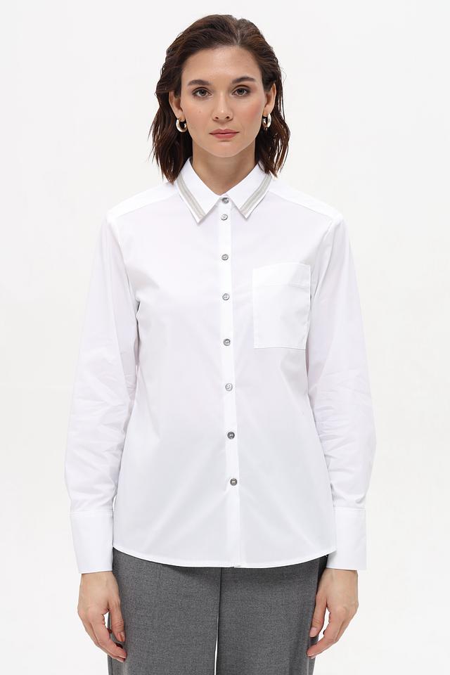 Белая рубашка Bianca с длинным рукавом и воротником с отделкой. Классический крой и качественные материалы делают эту рубашку универсальным элементом гардероба. Состав: хлопок 58%, полиамид 37%, эластан 5%
