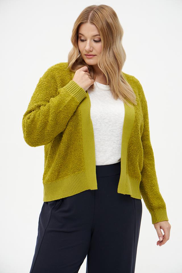 Жакет Bianca оливкового цвета – это стильное и комфортное решение для создания уютных образов. Модель выполнена из мягкого вязаного полотна и имеет удобный V-образный вырез. Жакет станет отличным дополнением к вашему гардеробу. Состав: полиакрил 62%, полиэстер 22%, хлопок 13%, шерсть 2%, эластан 1%