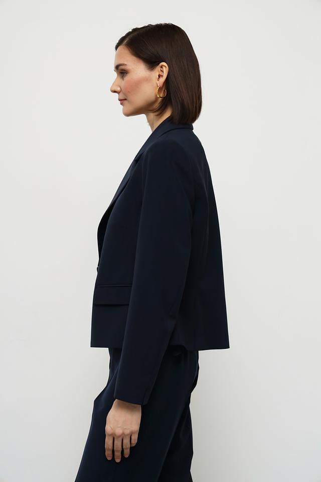 Тёмно-синий жакет Bianca приталенного силуэта станет отличным дополнением к вашему гардеробу. Изготовлен из полиэстера с добавлением эластана, что обеспечивает комфорт и удобство в носке. Состав: полиэстер 91%, эластан 9%