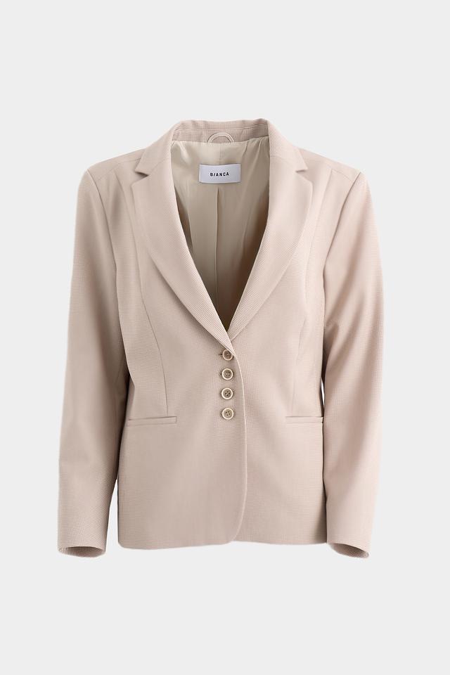 Жакет Bianca бежевого цвета – это стильное и элегантное решение для создания делового или повседневного образа. Приталенный крой подчеркивает фигуру, а классический дизайн делает его универсальным элементом гардероба. Состав: полиэстер 70%, вискоза 25%, эластан 5%