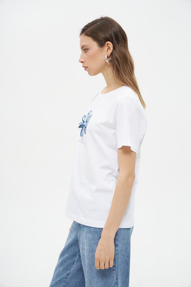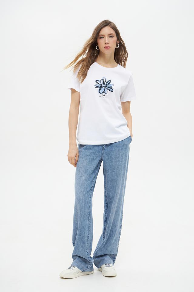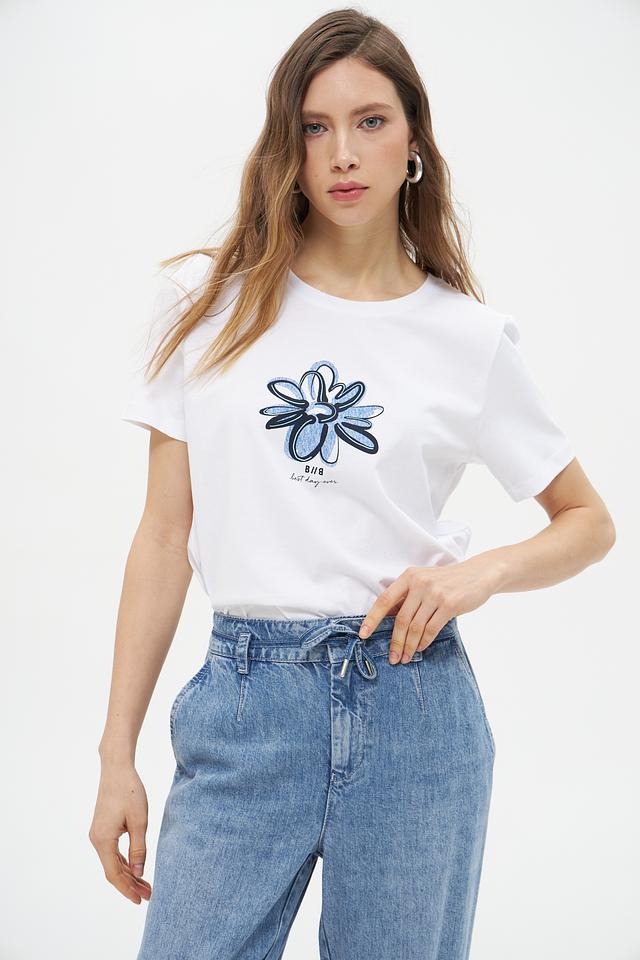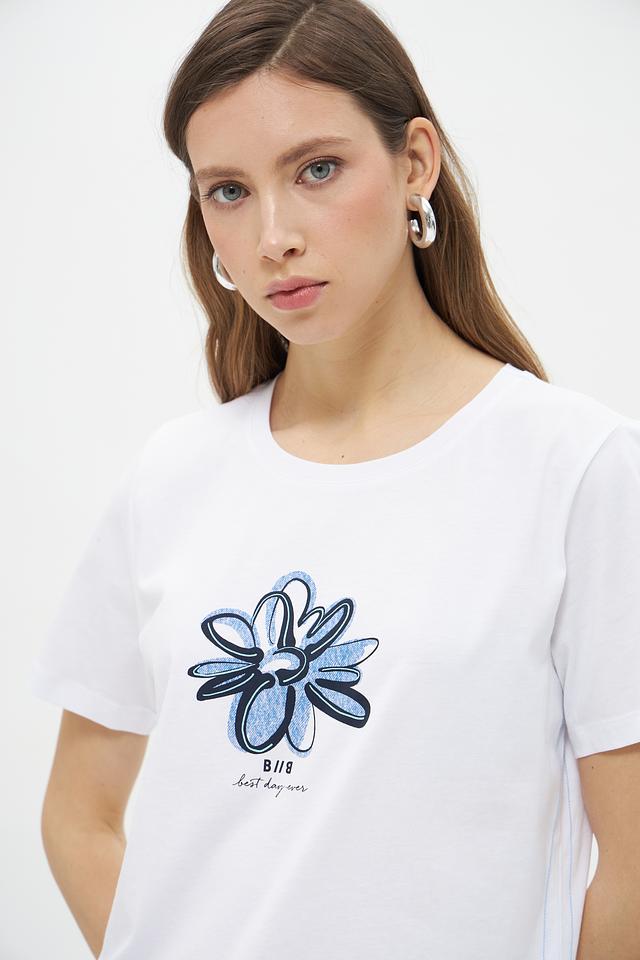 Белая футболка Bianca с оригинальным принтом в виде цветка станет отличным дополнением к вашему образу. Изготовлена из 100% хлопка, обеспечивая комфорт и удобство в носке. Состав: хлопок 100%
