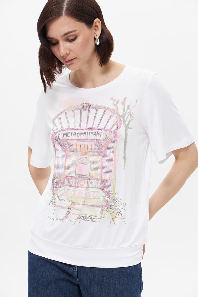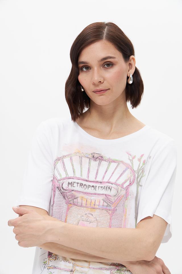 Белая футболка Bianca с оригинальным принтом в виде изображения парижского метро. Изготовлена из мягкой вискозы с добавлением эластана для комфорта и хорошей посадки. Стильный и удобный вариант для повседневного образа. Состав: вискоза 92%, эластан 8%