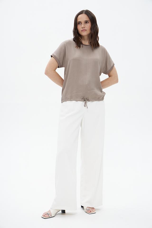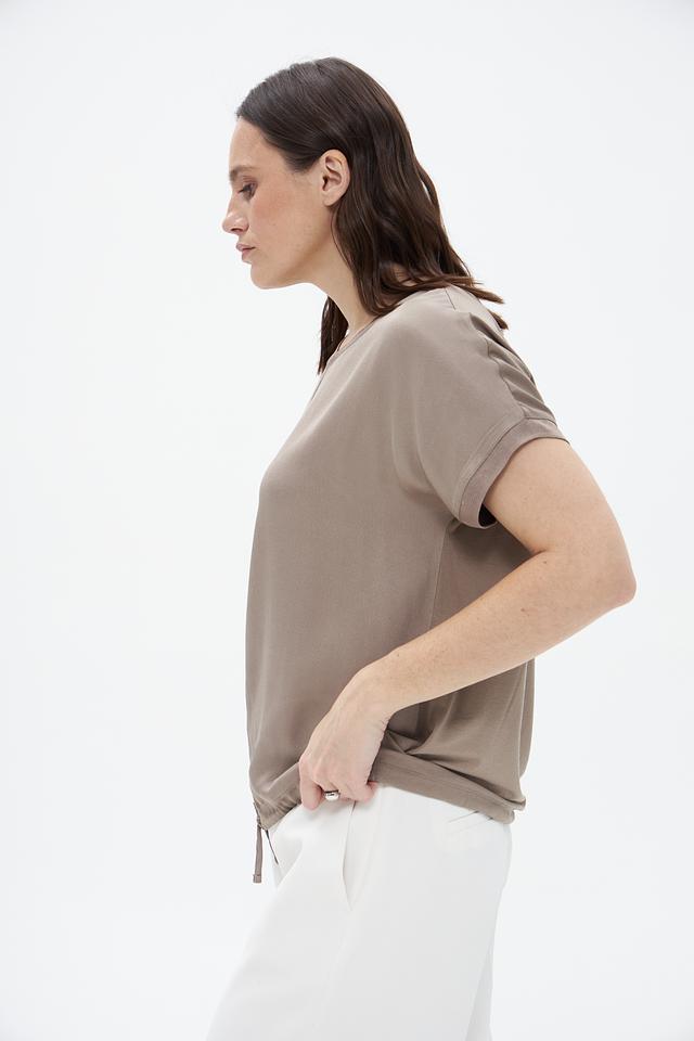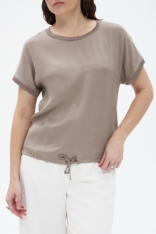 Бежевая блуза Bianca из вискозы с короткими рукавами и завязками по бокам. Эта модель отличается свободным кроем и комфортной посадкой, идеально подходит для создания повседневных образов. Состав: вискоза 92%, эластан 8%