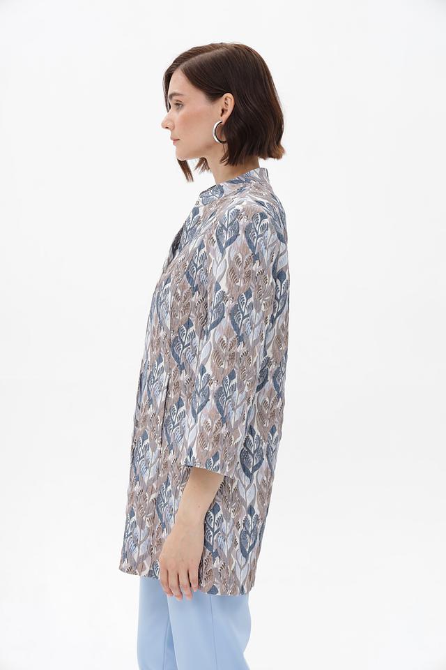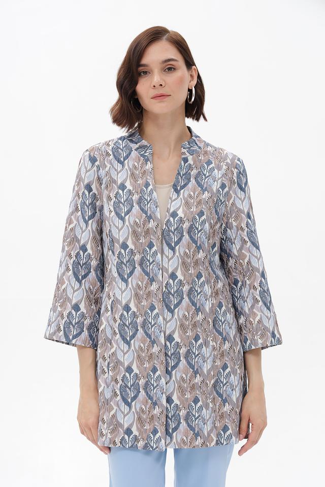 Этот стильный жакет от Bianca станет прекрасным выбором для создания элегантного и женственного образа. Жакет выполнен в оригинальном дизайне с ярким цветочным принтом, сочетающим в себе оттенки синего, коричневого и бежевого.