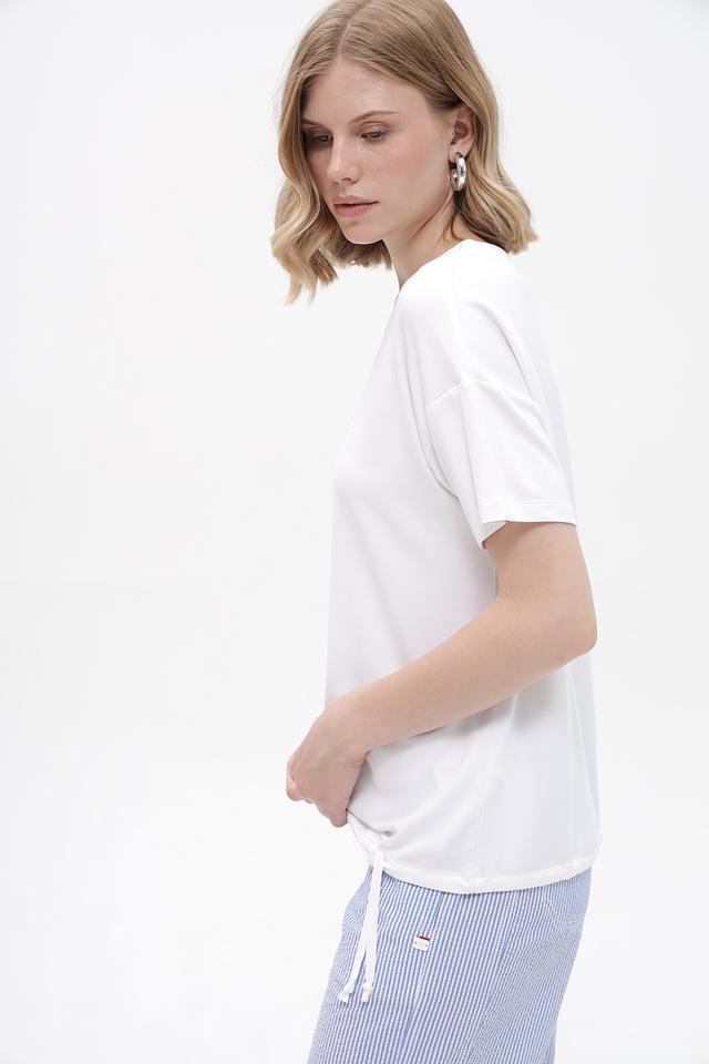 Эта футболка станет отличным выбором для создания повседневных образов. Ее можно сочетать с джинсами, шортами, юбками или брюками, создавая различные стильные комплекты.