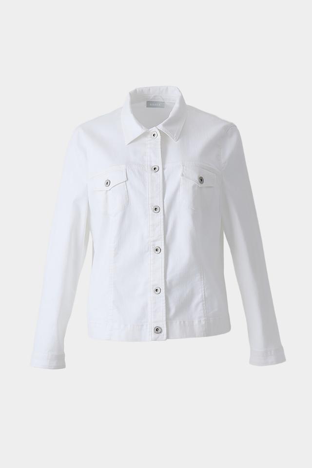 Белый джинсовый жакет Bianca из хлопка с добавлением полиэстера и эластана. Классический крой и удобная застежка на пуговицы делают эту модель универсальным дополнением к вашему гардеробу. Состав: хлопок 70%, полиэстер 27%, эластан 3%