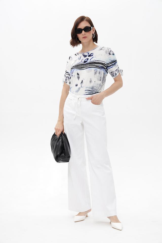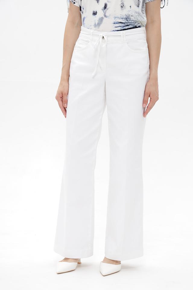 Белые брюки клеш от Bianca из хлопка с добавлением полиэстера и эластана. Модель имеет завышенную талию и пояс с кулиской для комфортной посадки. Состав: 70% хлопок, 27% полиэстер, 3% эластан. Состав: хлопок 70%, полиэстер 27%, эластан 3%