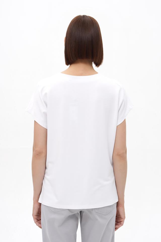 Короткие рукава делают эту футболку идеальным выбором для теплой погоды. Она прекрасно сочетается с джинсами, брюками, юбками и шортами, позволяя создавать разнообразные образы. Состав: 92% вискоза, 8% эластан.