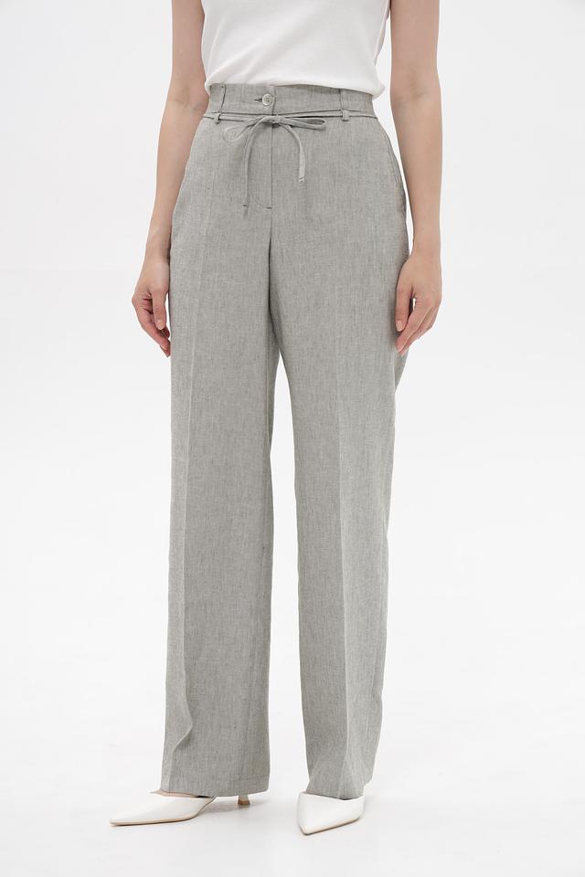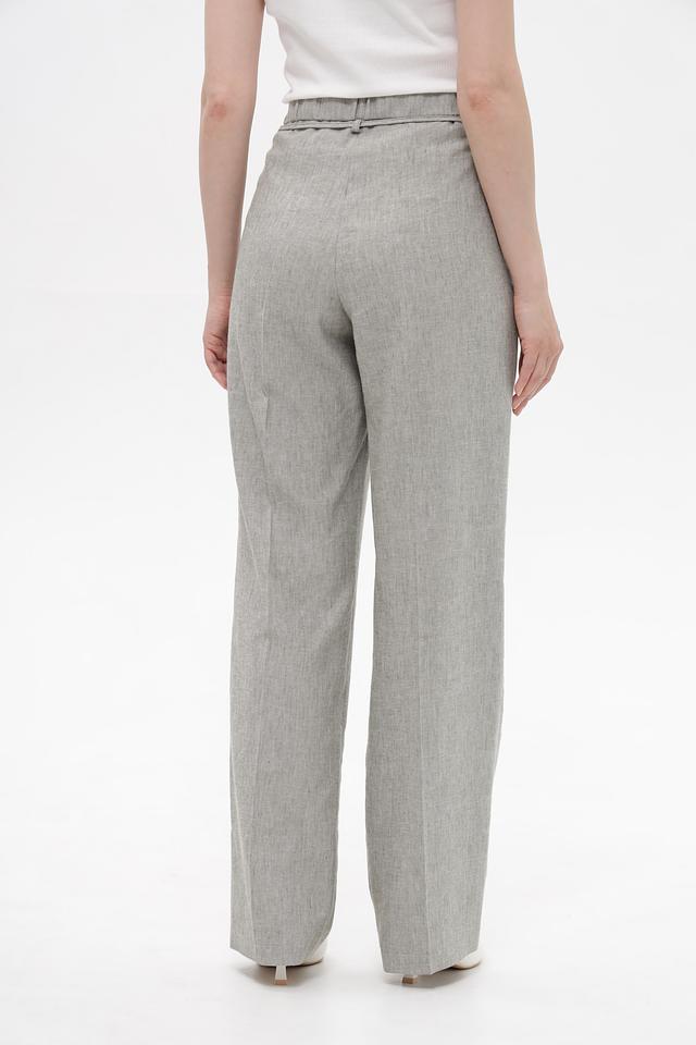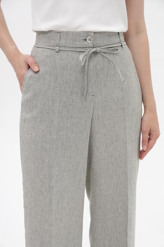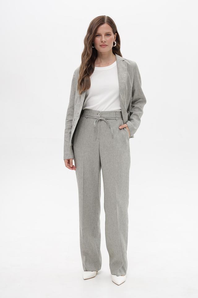 Серые брюки от Bianca с удобным поясом-завязкой, выполненные из смесовой ткани с добавлением льна. Идеальный выбор для создания комфортных и стильных образов в тёплую погоду. Состав: лен 57%, полиэстер 23%, лиоцел 17%, эластан 3%