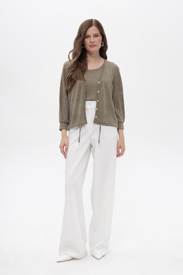 Этот базовый топ от Bianca станет незаменимой частью вашего гардероба. Выполненный в практичном цвете хаки, он легко сочетается с различными элементами одежды, позволяя создавать стильные и комфортные образы.