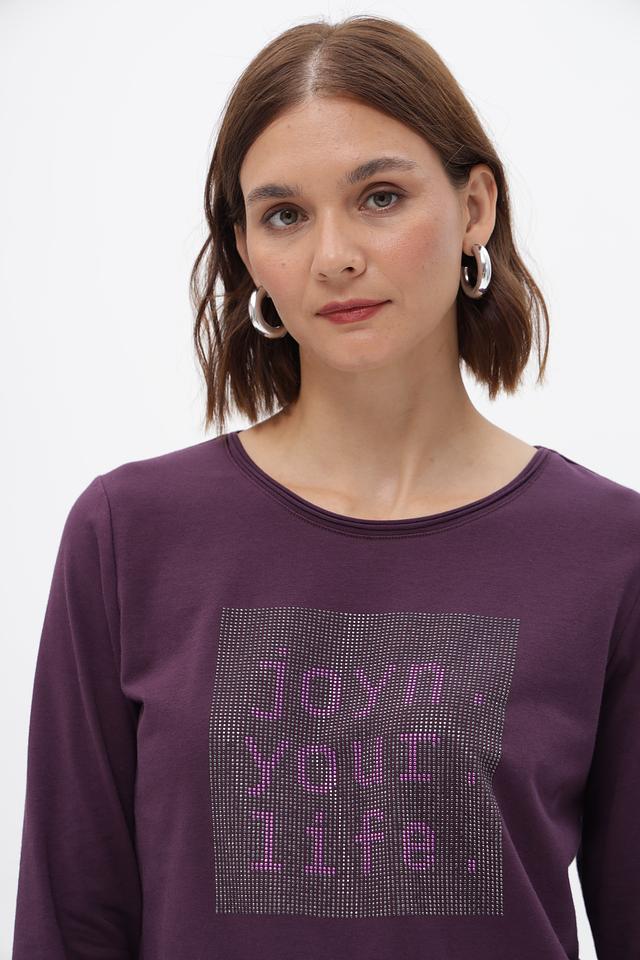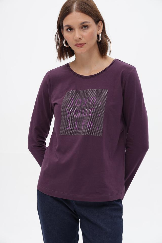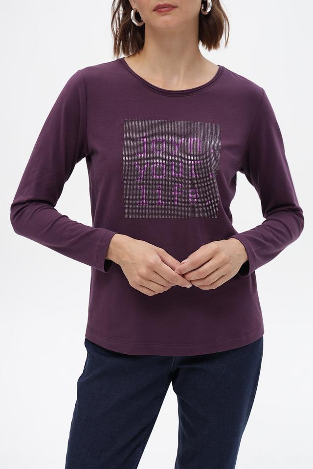 Футболка Bianca пурпурного цвета с длинным рукавом и ярким принтом. Изготовлена из мягкого хлопка с добавлением эластана для комфорта и хорошей посадки. Идеально подойдет для создания стильного повседневного образа. Состав: хлопок 92%, эластан 8%