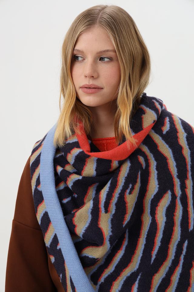 Этот стильный шарф от Bianca станет ярким акцентом в вашем гардеробе. Шарф выполнен в оригинальном дизайне с тигровым принтом, сочетающим в себе оттенки синего, красного, бежевого и оранжевого.
