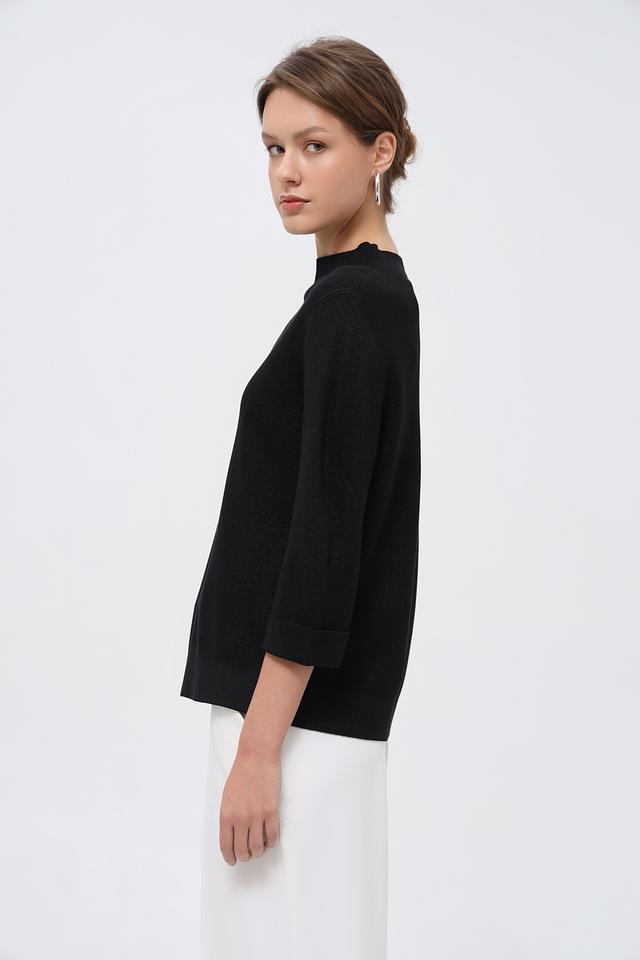 Чёрный пуловер Bianca с рукавом 3/4 – элегантная модель из вискозы, сочетающая комфорт и стиль. Полукруглый вырез горловины и лаконичный крой делают этот пуловер универсальным элементом гардероба. Состав: вискоза 80%, метализ.нить 20%