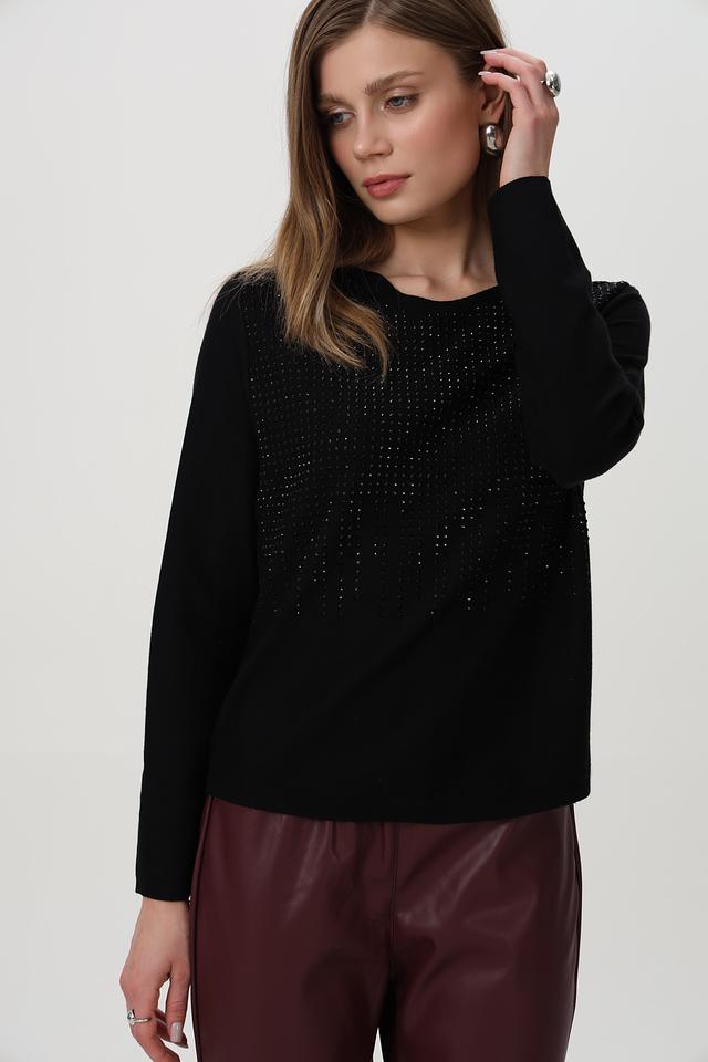 Чёрный пуловер Bianca с эффектным декором из пайеток станет стильным дополнением к вашему гардеробу. Изготовлен из мягкой вискозы с добавлением полиамида и металлизированной нити для деликатного блеска. Состав: вискоза 68%, полиамид 29%, метализ.нить 3%