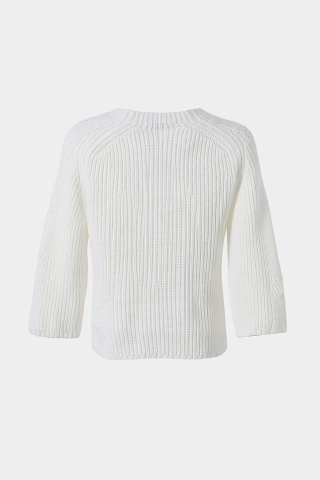 Пуловер имеет округлый вырез горловины и рукава три четверти, что делает его универсальным для разных сезонов. Трикотажная структура изделия обеспечивает комфорт при носке, а сочетание хлопка и полиакрила гарантирует его износостойкость и простоту в уходе.