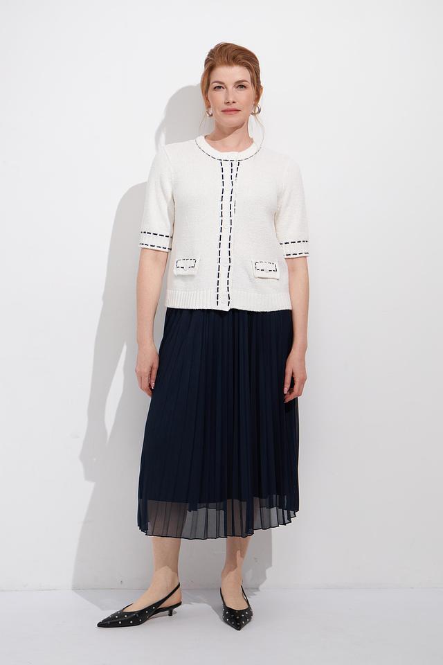 Жакет застегивается на пуговицы, которые гармонично сочетаются с общим дизайном. Накладные карманы добавляют практичности и оригинальности. Отделка кантом подчеркивает линии жакета и придает ему завершенный вид.