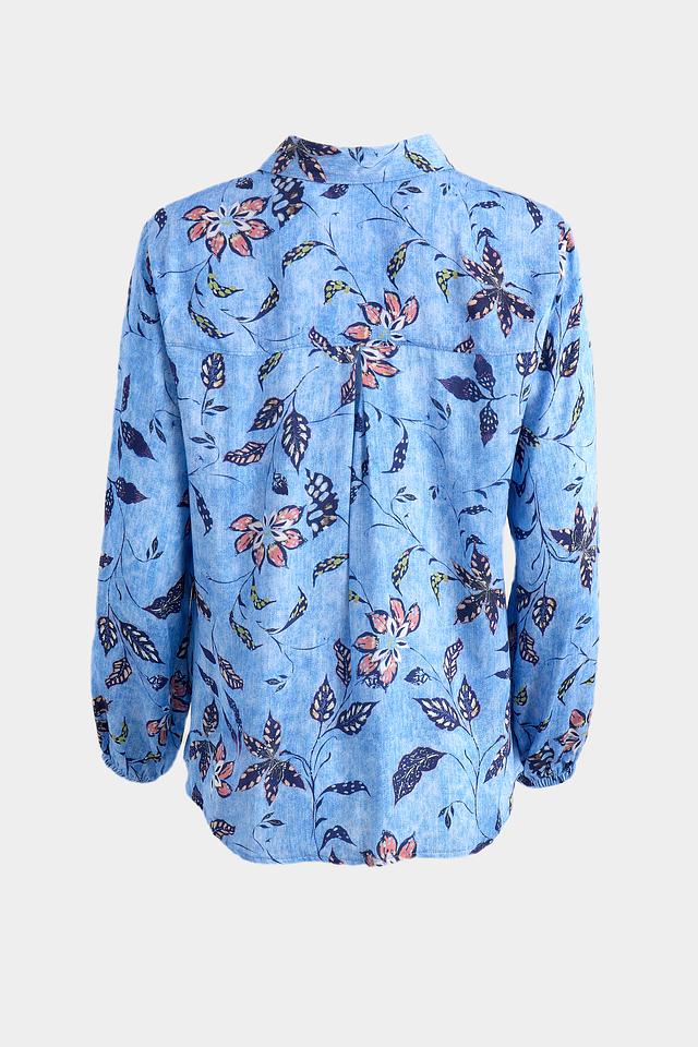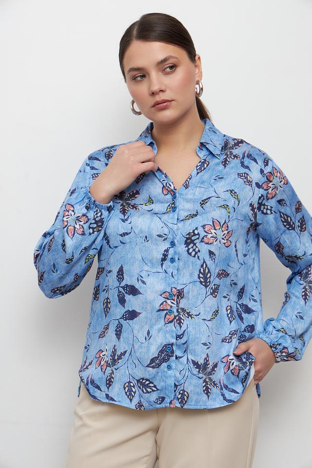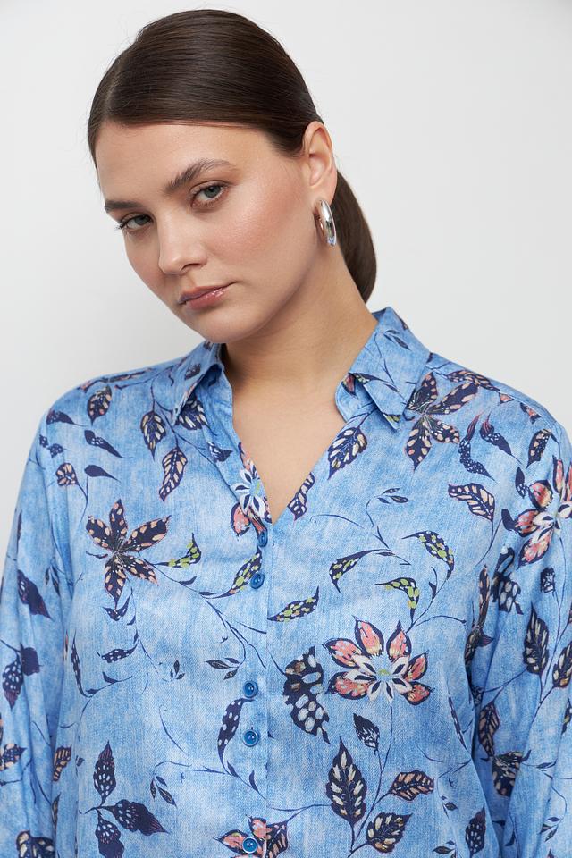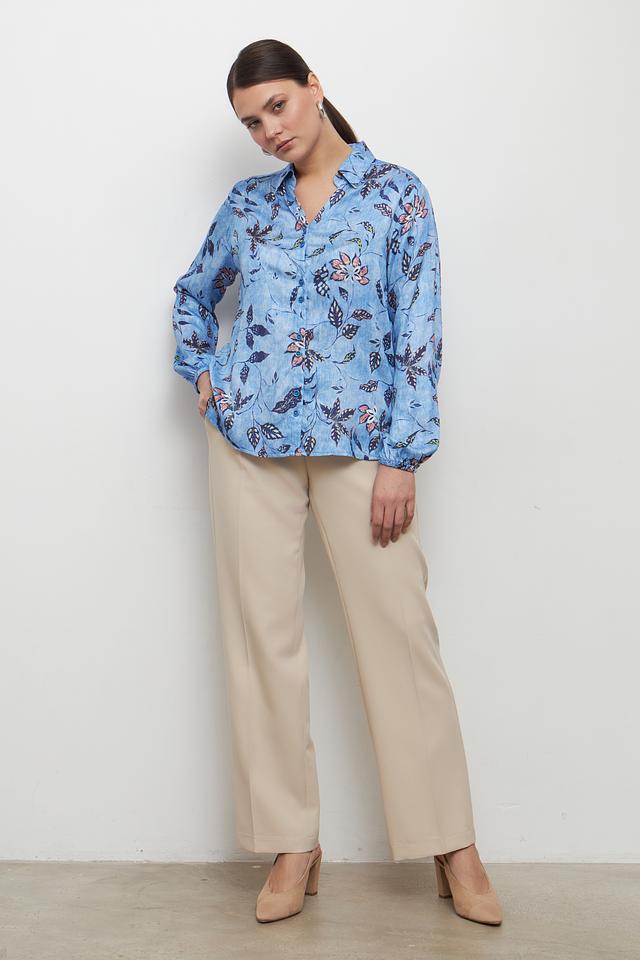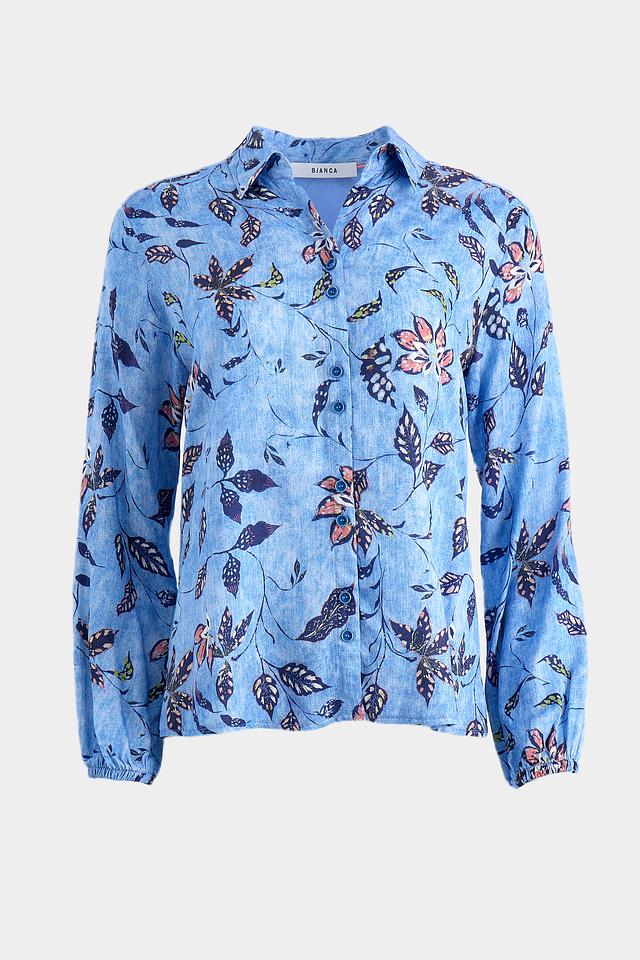 Блуза Bianca голубого цвета с ярким цветочным принтом станет отличным дополнением к вашему гардеробу. Модель выполнена из 100% вискозы, что обеспечивает комфорт и приятные ощущения при носке. Свободный крой и рукава-фонарики придают образу лёгкость и женственность. Состав: вискоза 100%