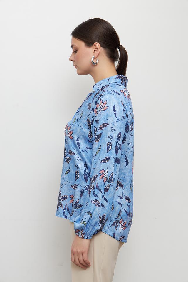 Особенностью данной модели является яркий цветочный принт, который добавляет ей женственности и привлекательности. Рукава-фонарики придают блузе романтичный вид и делают её более интересной.