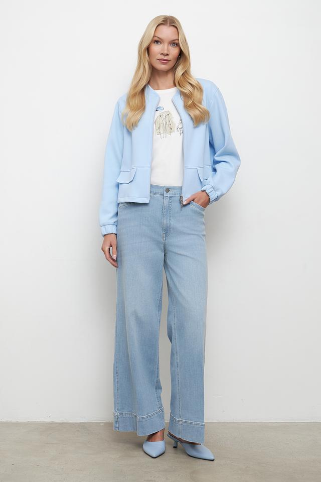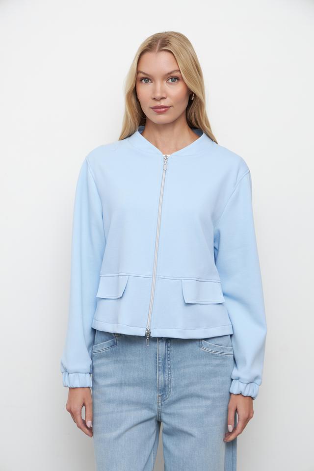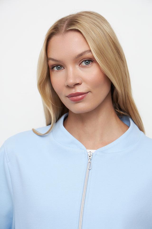 Женский жакет Bianca голубого цвета с застежкой на молнию и боковыми карманами. Модель выполнена из мягкого хлопка с добавлением эластана, обеспечивающего комфортную посадку. Жакет станет отличным дополнением к повседневному гардеробу. Состав: хлопок 92%, эластан 8%