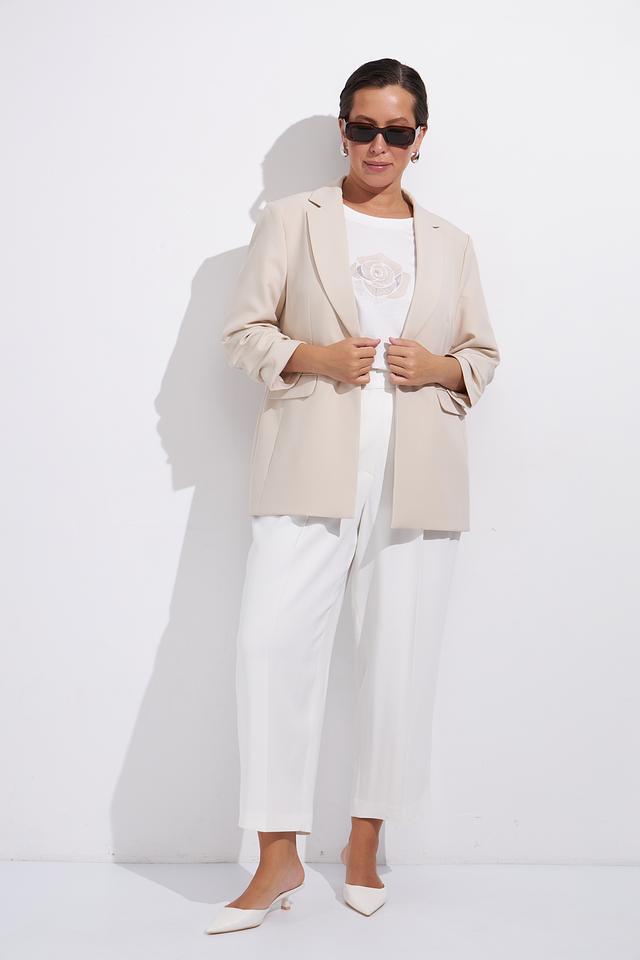 Этот жакет идеально подойдёт для работы, встреч или особых случаев. Он подчеркнёт вашу индивидуальность и хороший вкус. Благодаря нейтральному бежевому цвету, жакет легко комбинируется с другими элементами гардероба, создавая разнообразные и стильные образы.