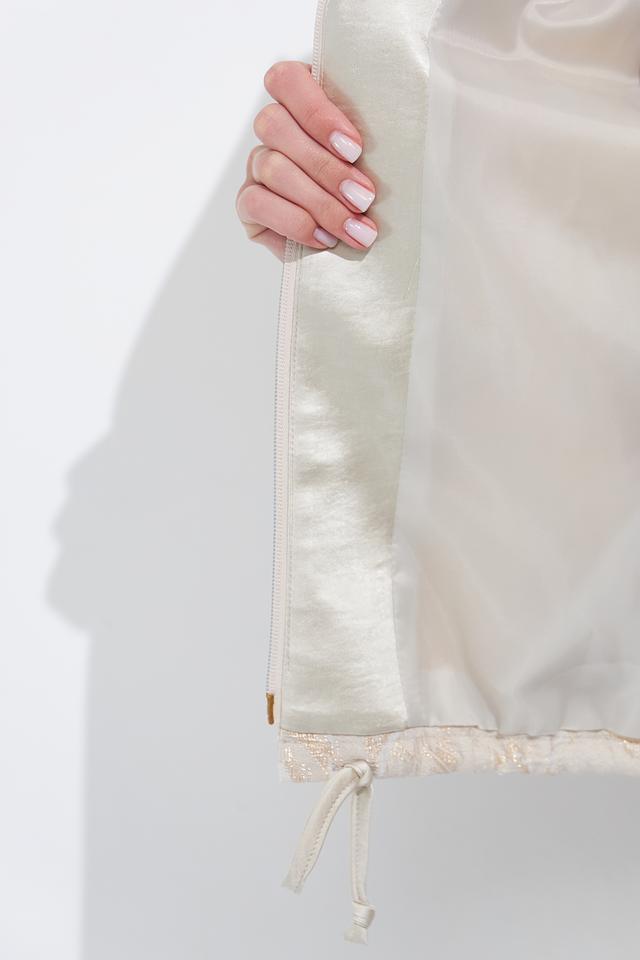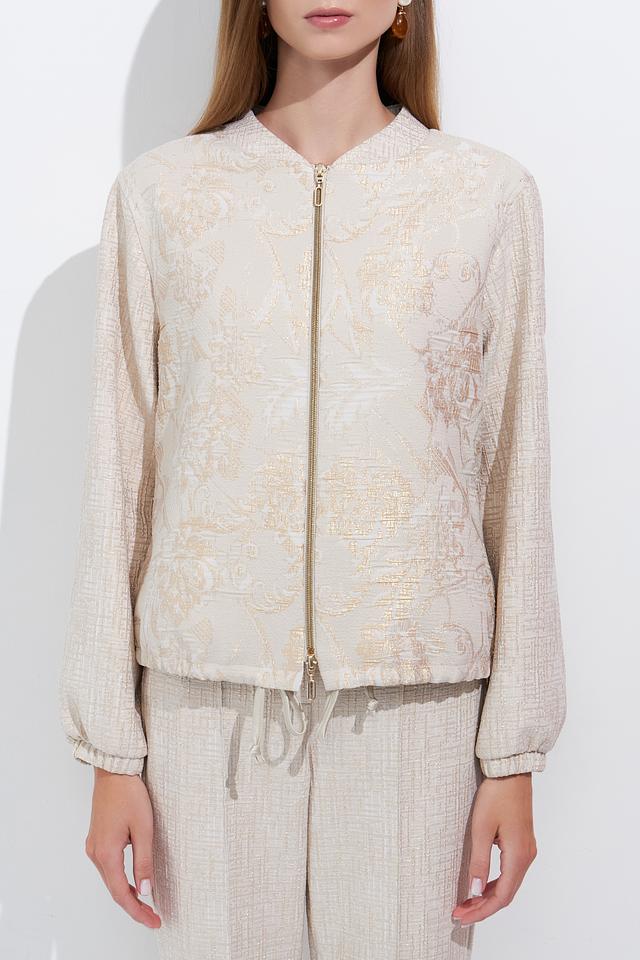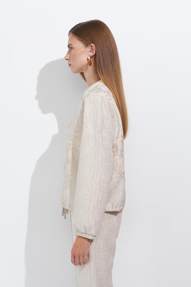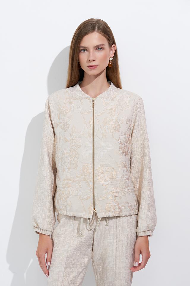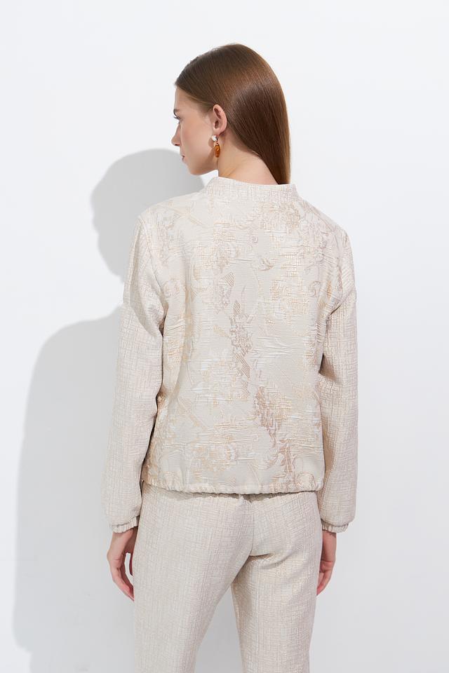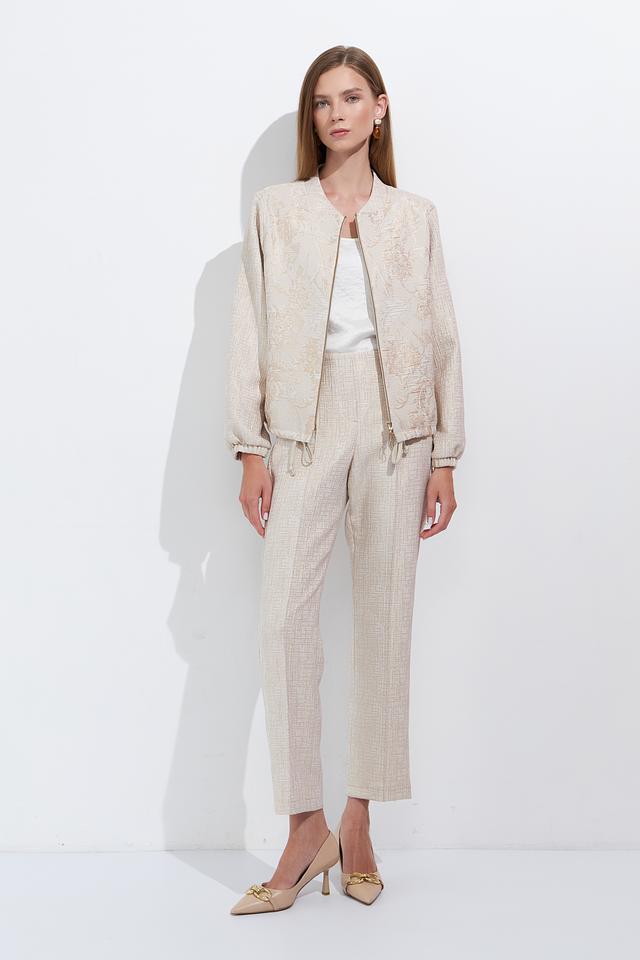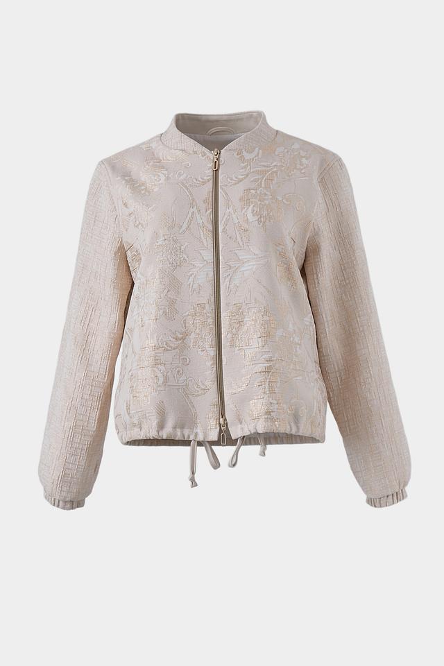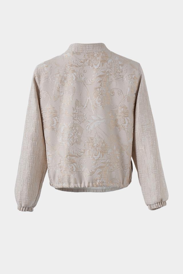 Жакет имеет удобную застёжку на молнию, воротник-стойку и манжеты на резинке, что обеспечивает комфортную посадку по фигуре. Длина рукава 3/4 делает его универсальным для разных сезонов.