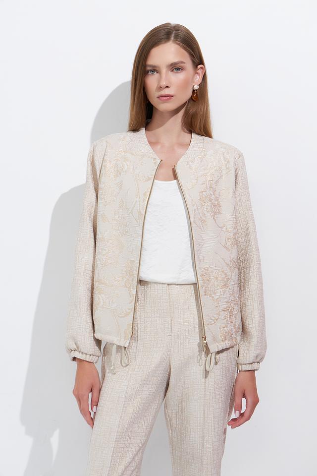 Этот жакет от Bianca станет прекрасным дополнением к вашему гардеробу. Он выполнен в нежном бежевом цвете и украшен изысканной вышивкой, придающей ему особый шарм.